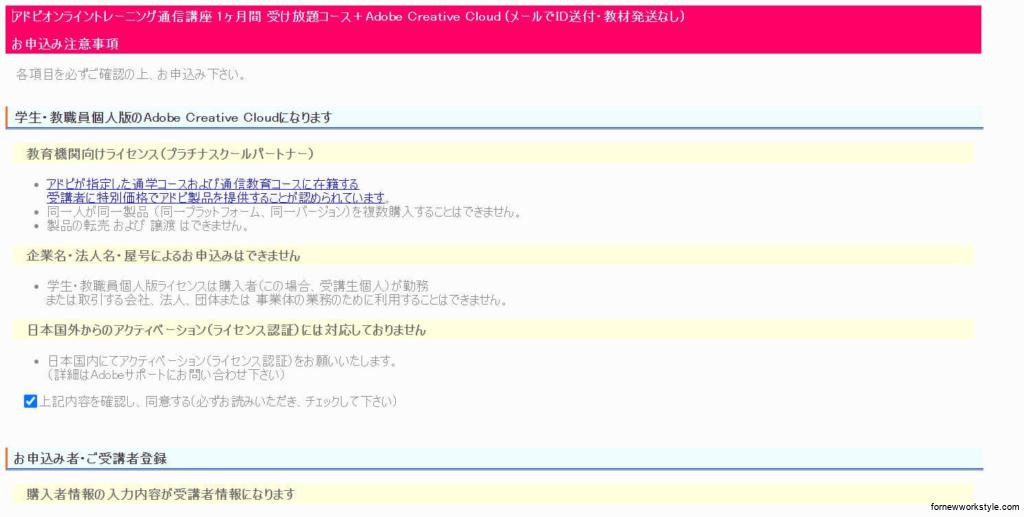 アドビオンライントレーニング通信講座の1か月コースに同時に申し込むという形で、Adobeが学生割引価格で購入できるというわけです。