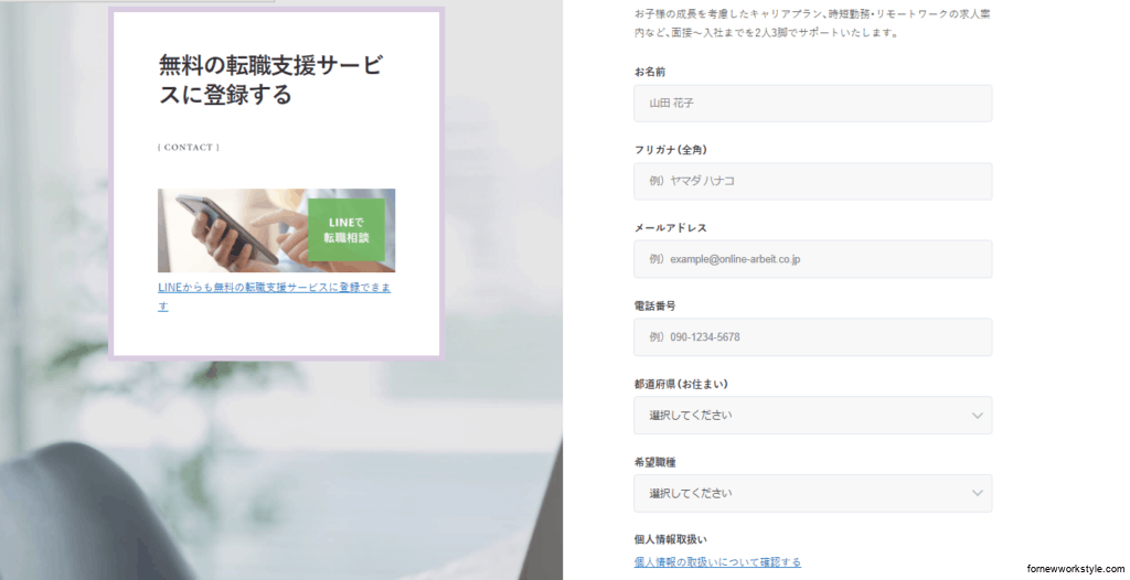 他の転職サイトだと最初の会員登録が面倒だと思いますが、ママキャリは登録前からLINEで相談できるのが時間のない私たちママにぴったりだと思います。