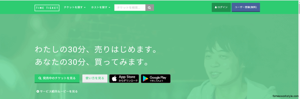 30分単位で自分のサービスを提供する「チケット」を発売することができるサービスです。