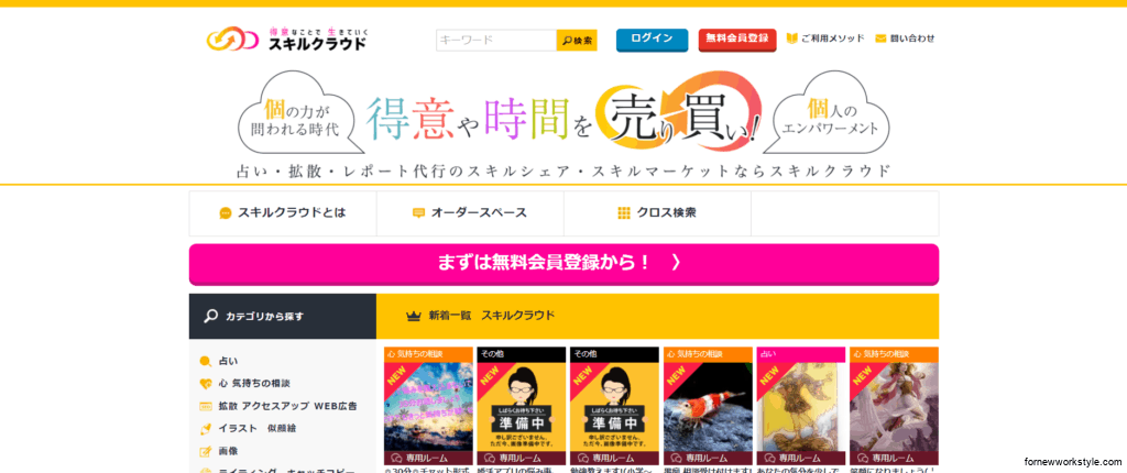 スキルクラウドの特徴は、出品者の手数料が一律で20%(消費税はスキルクラウドが負担)で、上の2社よりも安いことです。