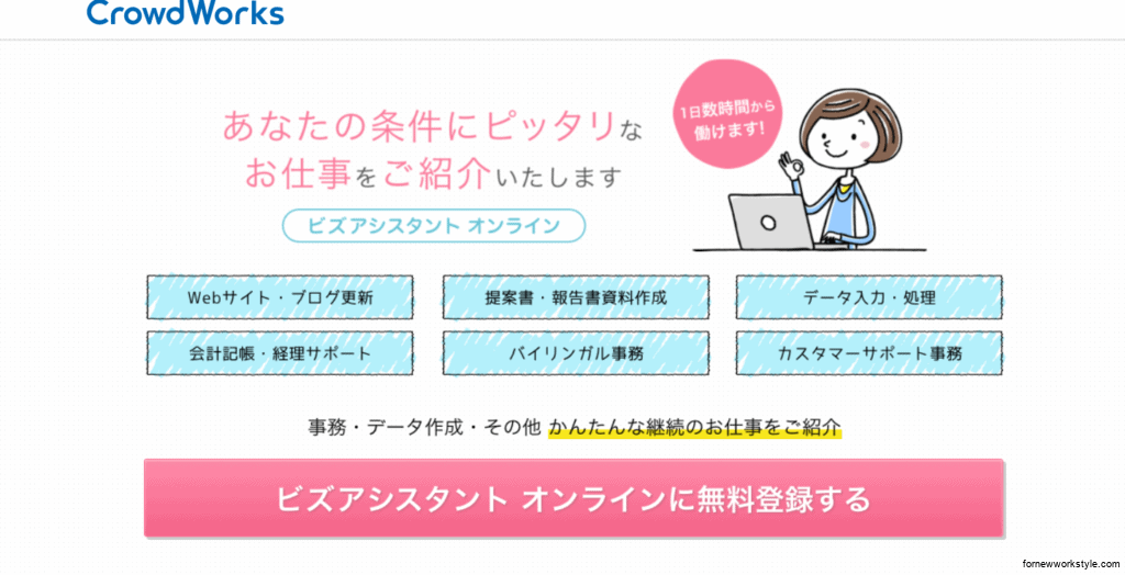 ビズアシスタントオンラインに登録するには、クラウドワークスへの登録が必要です。